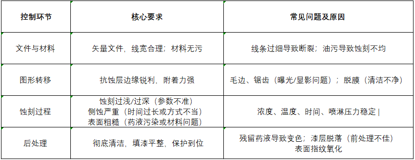 二、 蝕刻工藝全流程核心要求