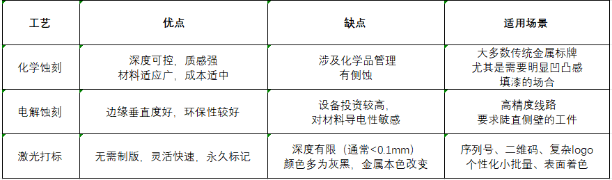 標(biāo)牌常見蝕刻深度:淺蝕刻(0.03-0.1mm,用于填漆)、中蝕刻(0.1-0.3mm,有明顯觸感)、深蝕刻(>0.3mm,立體感強(qiáng))。